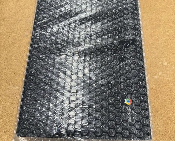 - Fold the bubble wrap from the bottom over and around the Chromebooks.