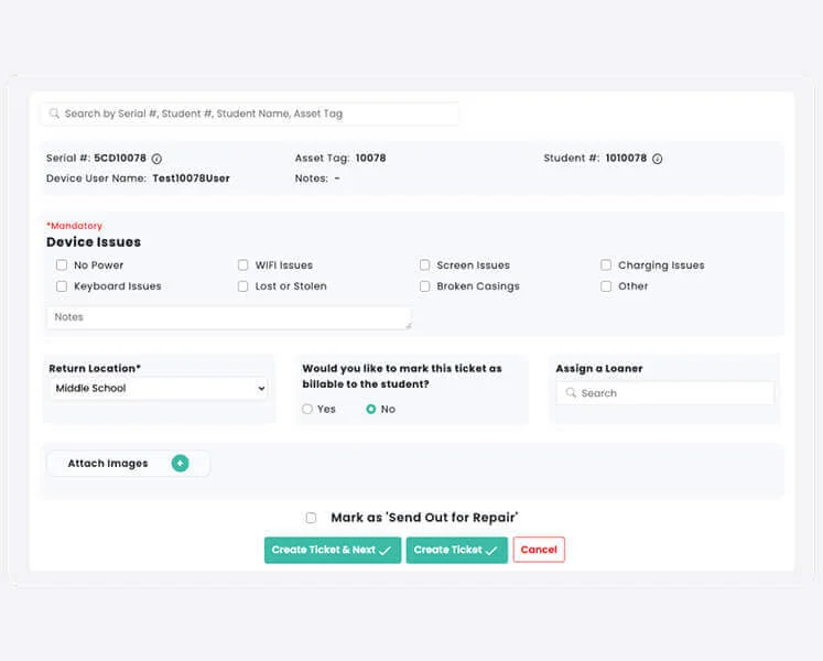 - <10 Tickets: Go to Repairs → Mass Ticket/Device Creation, or create tickets individually using the Create Ticket button in the upper-right corner of any screen.