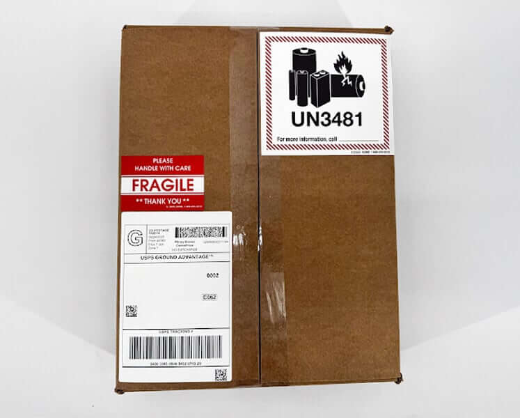 - Attach your shipping label, fragile sticker, and battery warning label to the outside of the box.